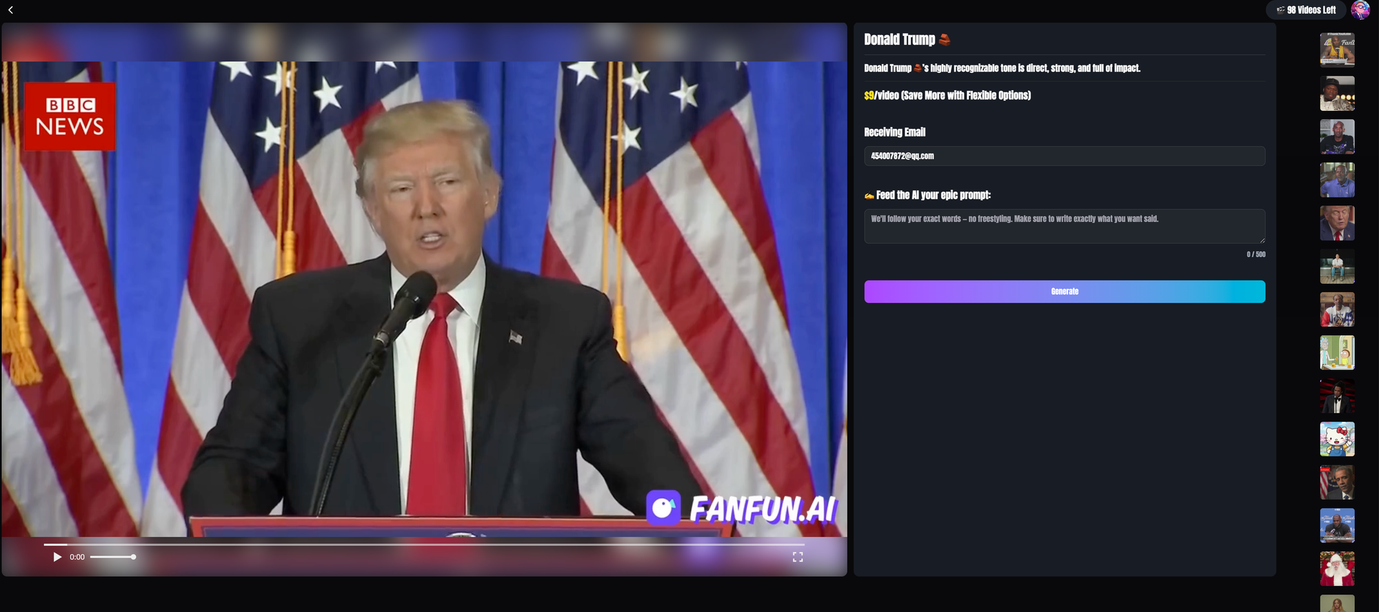 Fanfun allows users to generate AI video.